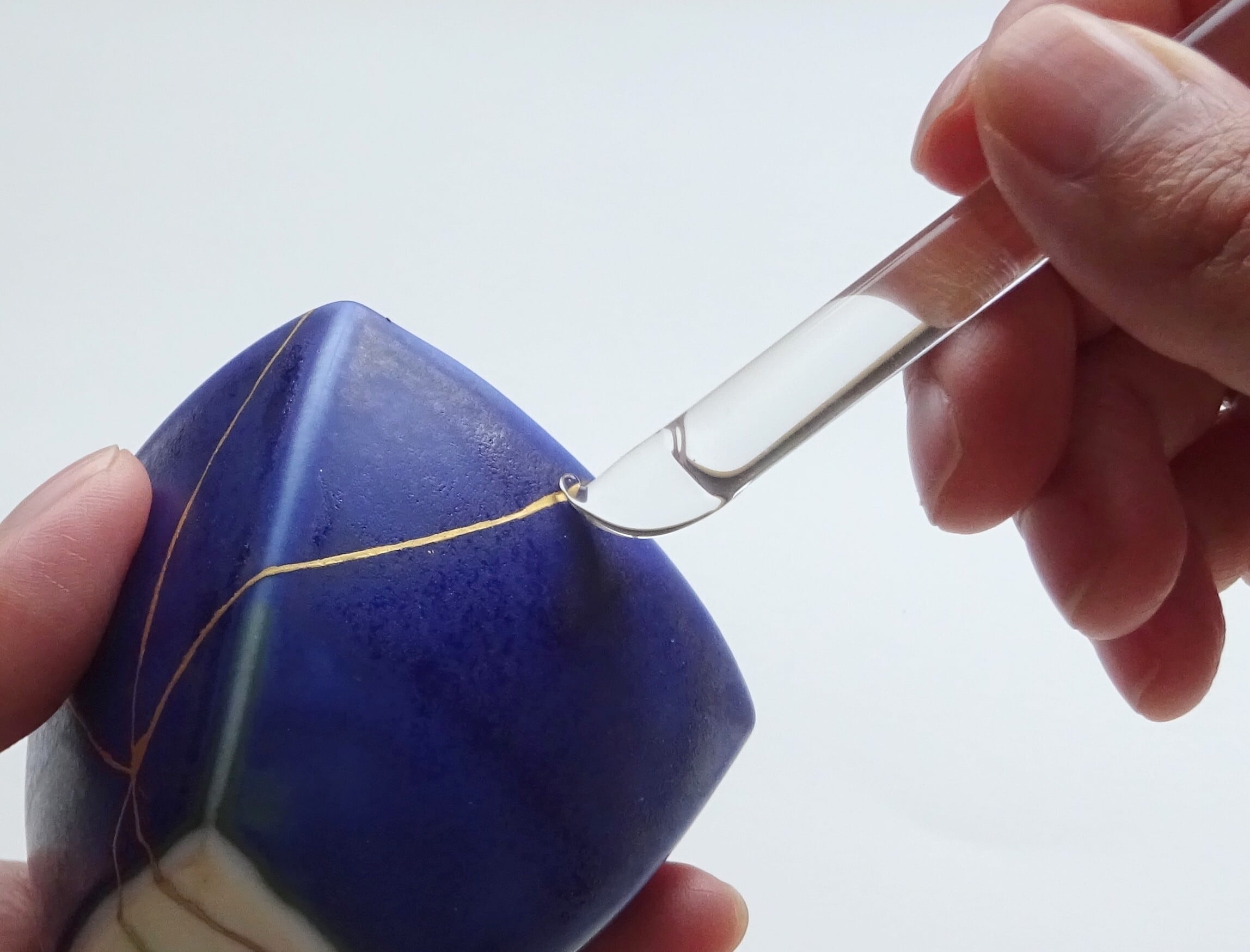 「ガラスで金継ぎ用の磨きツールが作れないか」をきっかけに始動し、試作を重ねて出来上がったのが「玻璃牙(はりき)」です。